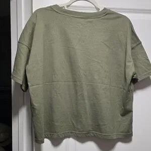 Cropped, but oversized so it can look like a regular shirt or be tied up. Tried on once.