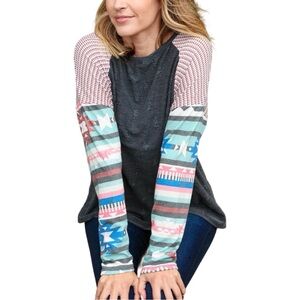 NEW HAPTICS DISTRESSED JACQUARD DOLMAN AZTEC THERMAL TOP