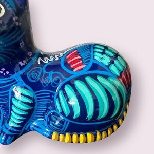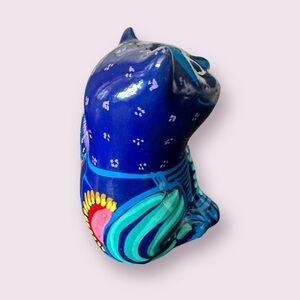 Vintage Hand Painted Ceramic Mexican Folk Art Talavera Cat Figurine With Flowers