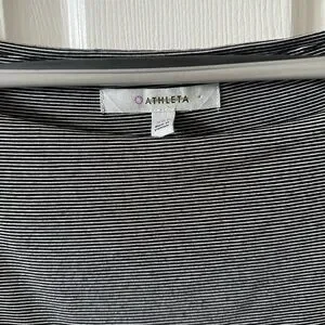 Athleta Dress XSP Navy and White tiny horizontal stripes, sleeveless, drop waist w/ elastic, boat neck, skirt shearing on the front, dress is lined, 36” length and 17” pit to pit excellent condition with no flaws...Never Worn
