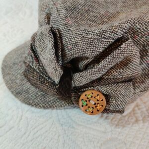 D & Y Newsboy With Bow Accent Knit Tweed Cap 1975 One Size Fits All Hat, in great condition see photos no tears or damage