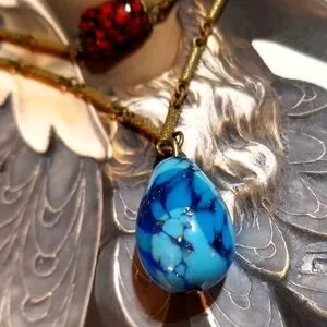 Highly Sought After and Collectible, Antique Circa 1920s Venetian Boro Glass Necklace. These beads are generally sold individually because it's hard to find them still on original Necklaces. I just happened to find a couple of these in a Great Estate sale, many years ago. These are so Beautiful and Unique. The chain is Brass. This Treasure measures 31" long and goes over the head. The Pendant measures 1.25" including bail. ALL in Excellent Antique condition. The Depth and Richness of these beads cannot be overstated. You'll LOVE this Rare Heirloom Quality Treasure.The invention of borosilicate glass is usually credited to Otto Schott, a renowned late 19th century glassmaker. It was apparently first sold under the name 'Duran' in Europe in 1893.