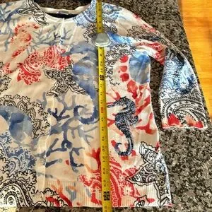 Christopher & Banks Unique Sea-life Print Cardigan Lightweight Sz M cotton