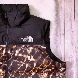 New With Tags- The North Face Men’s 1996 Retro Nuptse Vest In Coal Brown Water Distortion Print With Stowaway Hood, Front Zip Closure, Zippered Hand Pockets, Hem Cinch Cord And 700 Fill Goose Down Insulation.