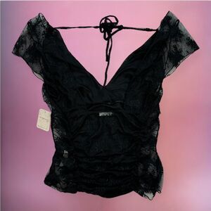 Free People new with tags black lace sheer fairy whimsy goth top with open back and mesh paneling🎀