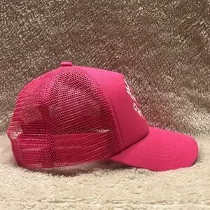 Bright pink hat with Happy Camper font. Snap back. Mesh backing. Slight curved bill. Should you have any questions, please do not hesitate to ask. Thank you for visiting my closet. 💐