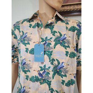 Caribbean Men's Shirt Size M Tropical Orange Button Up Short Sleeve NWT 37
