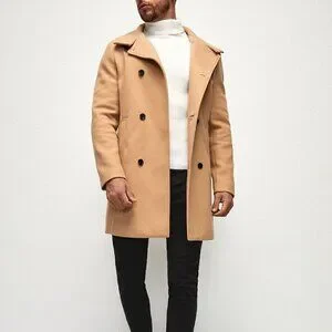 Khaki Preppy Mens Double Breasted Slant Pocket Overcoat