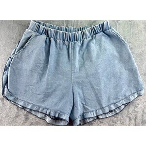 Grace & Emma Dolphin Hem Shorts Women's Size XL Chambray Blue Ruffle Pull On