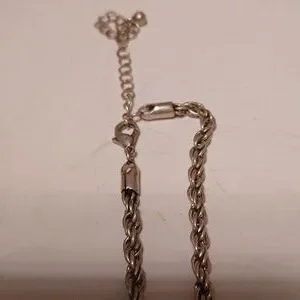 GREEN RHINESTONES PENDANT WITH SILVERTONE ROPE NECKLACE, HALLMARK X, LIKE NEW