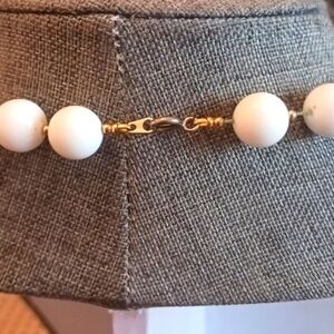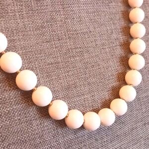 Step into a world of classic elegance with this Vintage White Acrylic Beaded Necklace. Each lustrous bead radiates a timeless appeal that is both sophisticated and versatile. Pair it with your favorite vintage dress. This pre-loved piece embodies a subtle yet striking beauty, making it the perfect accessory to add a touch of vintage charm to any ensemble.