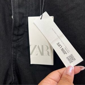 Zara Women's NWT straight leg high rise size 4 black jeans button fly Cotton