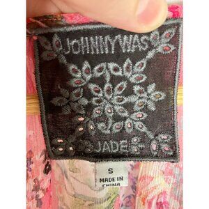 Johnny Was Adore Floral Sheer Boho Dress Button Detail & Tassel Tie Multicolor Womens Small Oversized