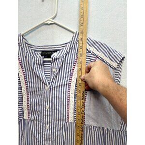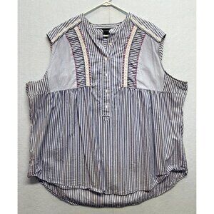 Lane Bryant Cotton Blue White Striped Button Front Sleeveless Tank Top Womens 26