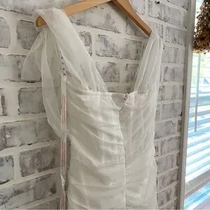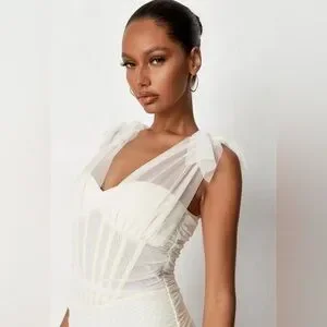 Missguided • Ivory Mesh Tie Shoulder Corset Mini Dress • Sweetheart Neckline