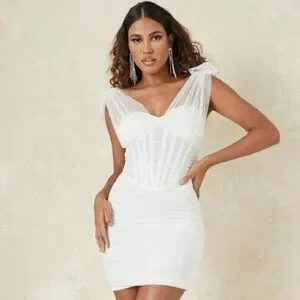 Ivory/White Mesh Tie Shoulder Corset Mini Dress
