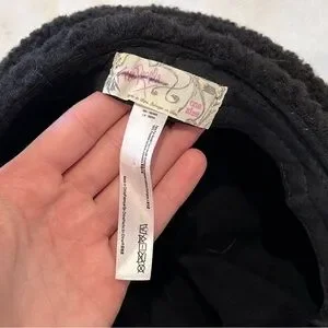 Stylish black fuzzy newsboy cap. Perfect for a cozy look. in excellent condition. no signs of use.