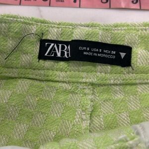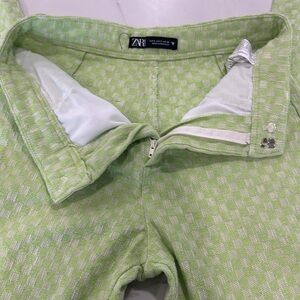 Zara Gingham Lime Green Checkered High Waist Pants