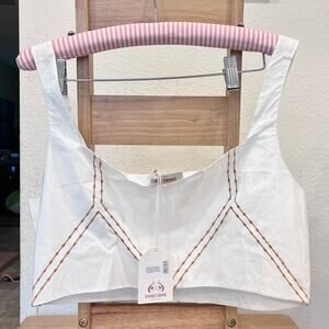 Emporio Sirenuse Cinderella Backgammon Embroidered Crop Top in Marshmallow NWT