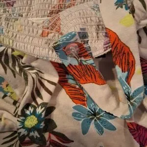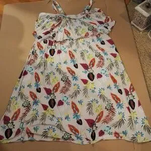 Preloved Tropical Leaf and flower patterned Terra and sky dress with removable button straps