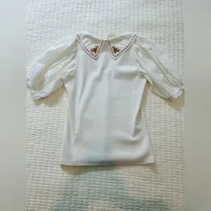 NWT Anthropologie Blouse with puff sleeve and embroidered collar size Small