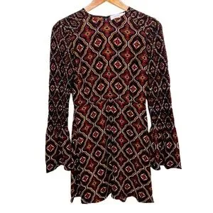 This is an absolutely amazing ALC Alexa A-Line Mini Dress made with 100 percent silk in a Size 2. Punctuated with a stunning bohemian print and flattering bell sleeves, this wardrobe staple from ALC retails for $595 and features that coveted 70s vibe! Pristine, new without tags and unworn.