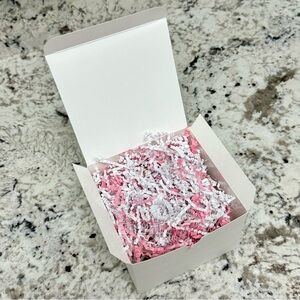 Cleaning, filing sharp edges off, painting 1st coat of white, decoupaging, drying, filing edges, painting with gold leaf, spraying with 2 coats of clear coat and wrapping in a white gift box with crinkle cut paper.