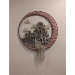 Round Hoop Tree Fiber Art Fiber Textile Macrame Hand Woven Yarn Pink Girls Room