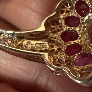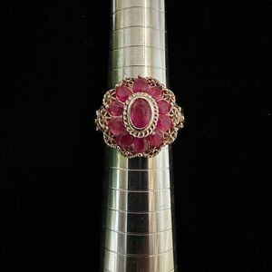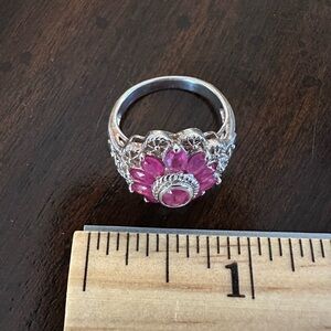 Filigree Scalloped Edge Ruby Ring in Sterling Silver. Size 7.75