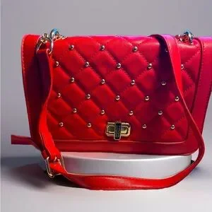 BADGLEY MISCHKA Red studs quilted crossbody purse