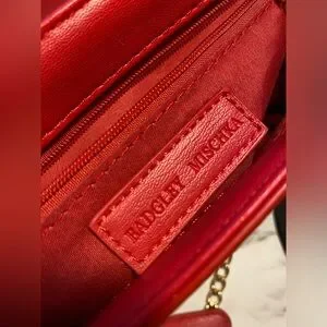 Gently used Badgley Mischka gold studded, red quilted crossbody purse. Chain strap. Great condition. Smoke free home.