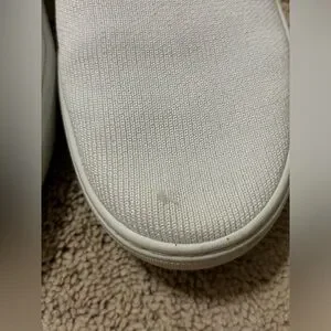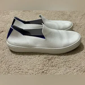 Well-loved Rothy’s slip on sneakers. There is slight pilling on one shoe but they are otherwise in excellent condition with so much life left. They are machine washable and come out looking brand-new. I’m selling because they are slightly too tight for me.