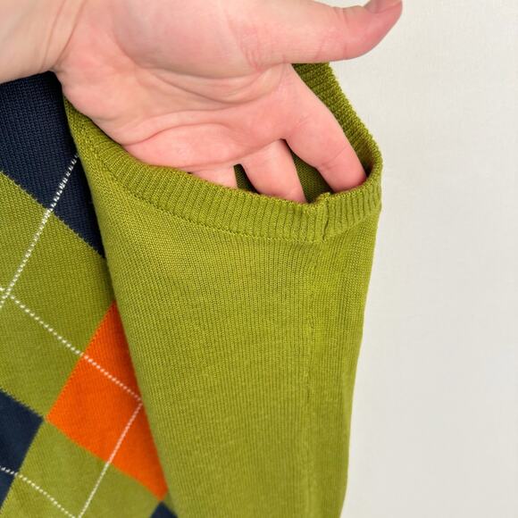 Linea Uomo Green Orange Blue Argyle Print V-Neck Knit Sweater Vest Sz Large