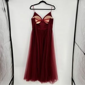 Anthropologie BHLDN Camden Dress Burgundy Red Sweetheart Tulle Dress Bodice 14