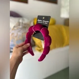 (Add to bundle for $5!) Pink/black velvet, wash headband, beautiful colour o/s