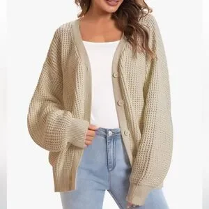 QUALFORT Cardigan Sweater 100% Cotton Button-Down Oversized Knit Cardigans