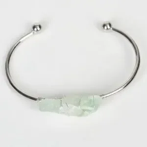 Fluorite Gemstone Crystal Silver Wire Wrapped Cuff Bangle Bracelet Jewelry