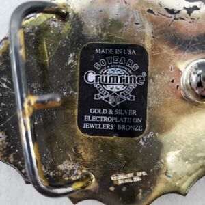 This vintage Crumrine belt buckle features a stunning design of wild horses in Reno, Nevada. The heavy silver on jewelers bronze adds a touch of elegance to this unique piece, making it a great addition to any collection. The buckle was made in the United States and represents Western Americana culture. It is perfect for collectors or those who appreciate the beauty of vintage belt buckles.