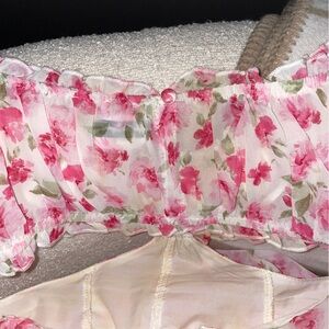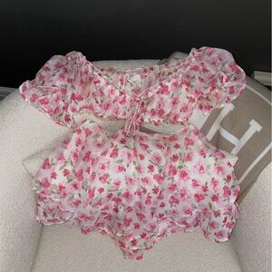 White Pink Floral Off Shoulder Romper