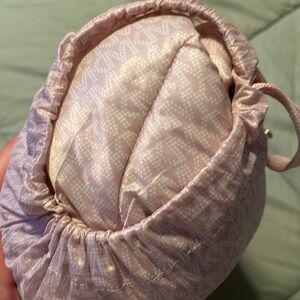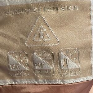 Light pink with white monogram MK jacket with silver emblem, zippers and detail