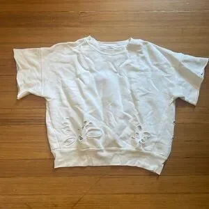Cute holes short sleeve crew neck sweatshirt material