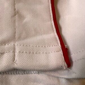Very good pre-owned condition. May have slight fading or bleeding of colors along the red edges.