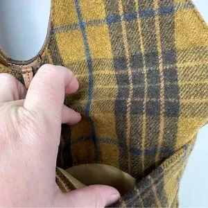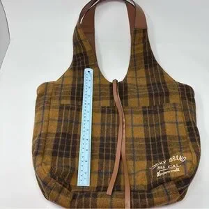 Lucky Brand Purse Brown Tan Blue Plaid Wool Blend Shoulder Bag Tote Front Pocket
