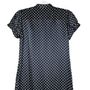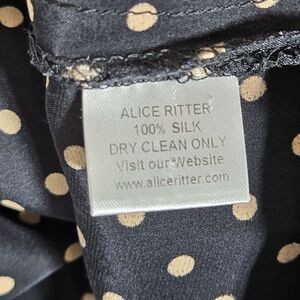 Alice Ritter Shirt Dress Womens 2 100% Silk Black Gold Polka Dot Rounded Hem