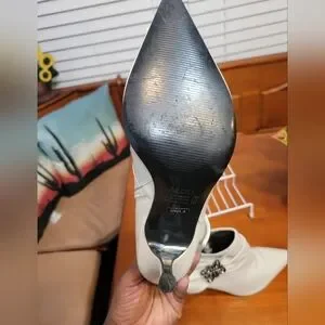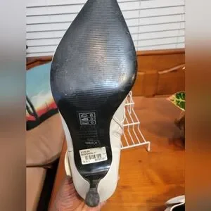 off white Brand name Aldo booties with a short heel with just some miner scuff marks still in really good condition.