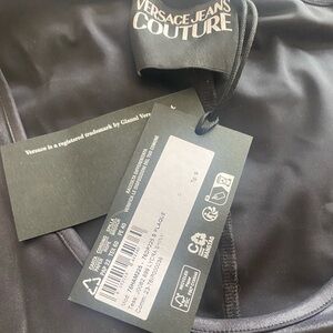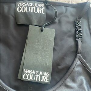 NWT Versace Jeans Couture Black Shiny Asymmetrical Cutout Bodysuit Size Small