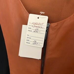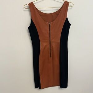 NWT Vakko New York Cinnamon/Black Leather Silhouette Dress (Size 10)