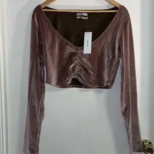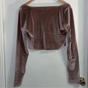 Dusted Rose ribbed velvet/velour scrunch long sleeve cropped top