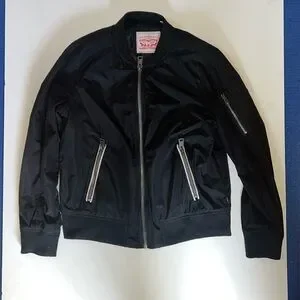 Perfect fall jacket with metal zipper detail and working pockets. Slight pilling in the cuffs and waist (see photos)