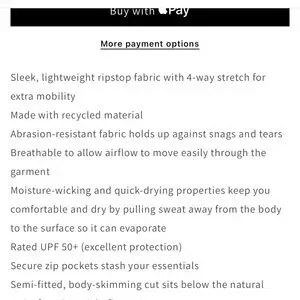 Sleek, lightweight ripstop fabric with 4-way stretch for extra mobility